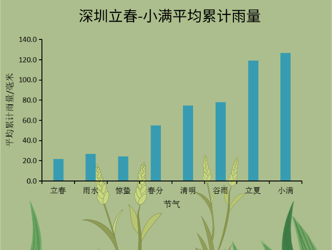 根據(jù)深圳國家基本氣象站的觀測數(shù)據(jù),1953-2019年深圳在小滿當天的平均氣溫為26.1℃,極端高溫34.2℃,出現(xiàn)在1963年。當天下雨的概率達到55.2%,近十年來小滿當天降水的概率更是達到了80%。