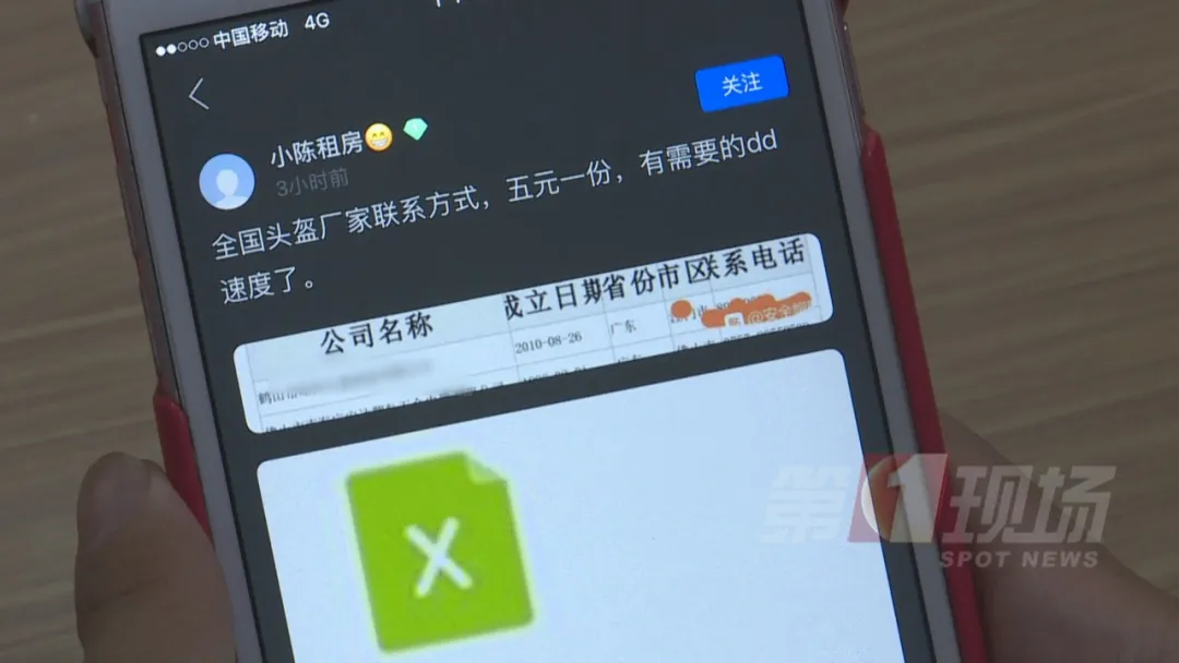 在一個(gè)社交平臺(tái)上,就有以33元的單價(jià),收購(gòu)十萬(wàn)個(gè)頭盔的買(mǎi)主。還有的人則是手握訂單,要找生產(chǎn)頭盔的廠(chǎng)商。更有甚者,以頭盔廠(chǎng)商的聯(lián)系方式作為資源,以五元4000個(gè)聯(lián)系方式,進(jìn)行叫賣(mài)。