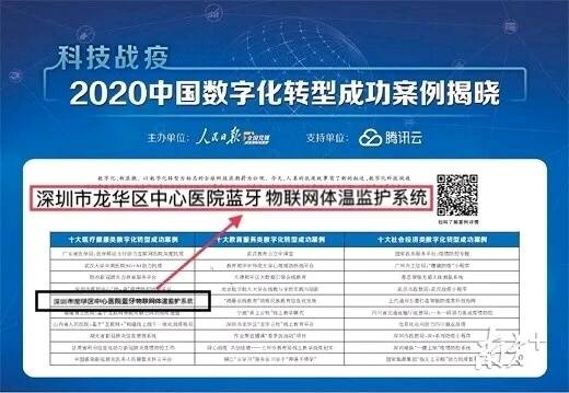 日前,《人民日報》公布“科技戰(zhàn)疫——2020中國數(shù)字化轉(zhuǎn)型成功案例”,龍華區(qū)中心醫(yī)院的藍(lán)牙物聯(lián)網(wǎng)體溫監(jiān)護(hù)系統(tǒng)入榜,躋身于醫(yī)療健康類數(shù)字化轉(zhuǎn)型成功案例。