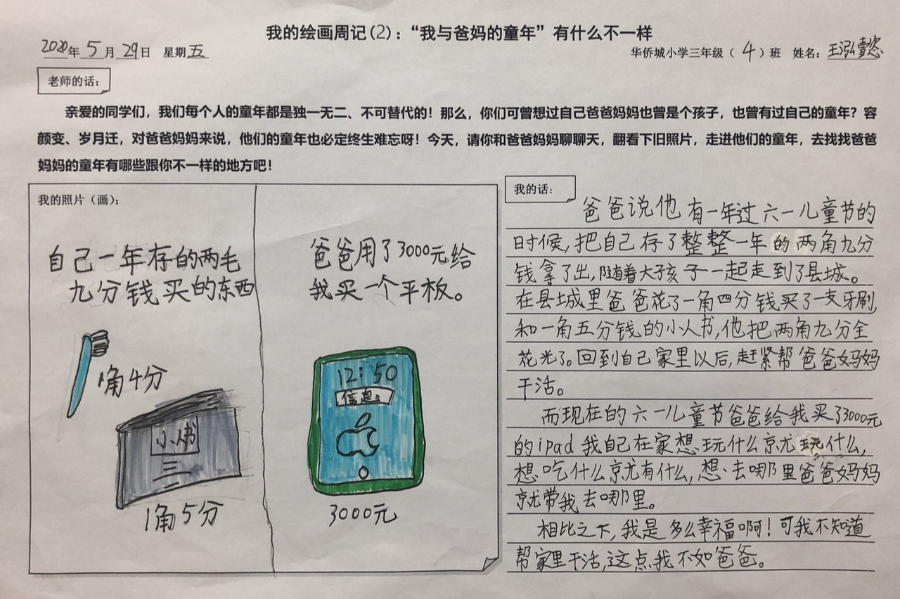 ▲媽媽說:“那會兒只有過六一兒童節(jié),才可以吃到大白兔奶糖。甜蜜蜜的味道,渴望了許久,吃了糖,糖紙都舍不得扔,還悄悄珍藏起來?!眿寢屵€說:“那時(shí),沒有漂亮的公主裙,只有純白的棉布裙,但還是特別的開心!”雖然我和媽媽在六一得到的禮物不同,但過節(jié)的心情都是激動又難忘!