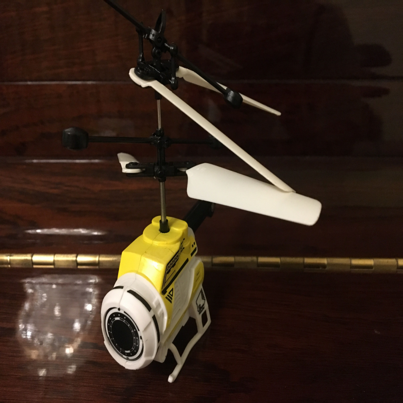 ▲這是我的高科技玩具,感應(yīng)飛行器,它的機(jī)殼上有一個(gè)體外紅外線裝置,使它一碰到物體就能自動感應(yīng)到障礙避開飛行。