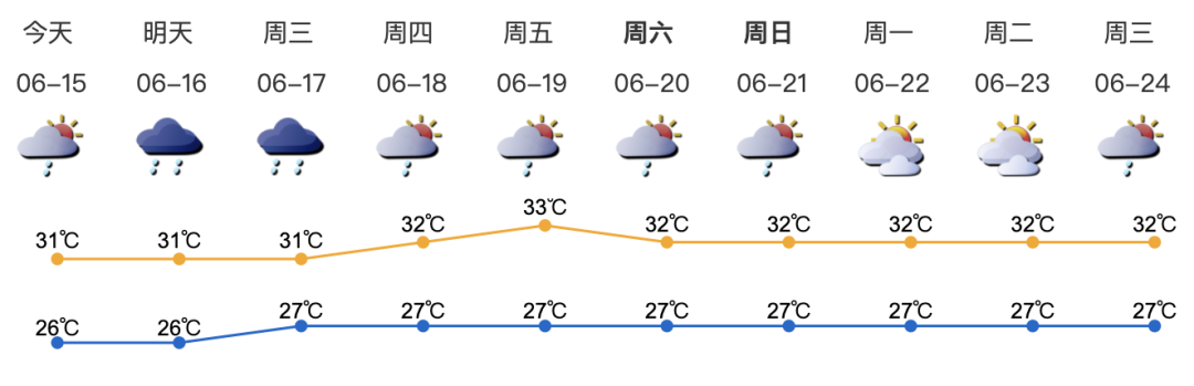 天氣將趨于悶熱,外出記得帶傘。