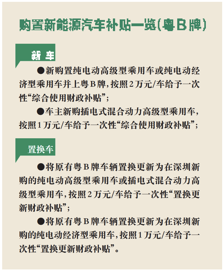 ⑥近日,市發(fā)改委發(fā)布《深圳市應(yīng)對(duì)新冠肺炎疫情影響促進(jìn)新能源汽車(chē)推廣應(yīng)用若干措施財(cái)政補(bǔ)貼申領(lǐng)工作指引》,將原有粵B牌車(chē)輛置換更新為在深圳市新購(gòu)的新能源小汽車(chē)并上粵B牌的個(gè)人消費(fèi)者,最高可享受一次性財(cái)政補(bǔ)貼4萬(wàn)元。市生態(tài)環(huán)境局再次發(fā)布溫馨提示,我市老舊車(chē)提前淘汰獎(jiǎng)勵(lì)補(bǔ)貼政策將于6月30日截止,請(qǐng)車(chē)主抓緊時(shí)間淘汰車(chē)輛,逾期將不能享受補(bǔ)貼。