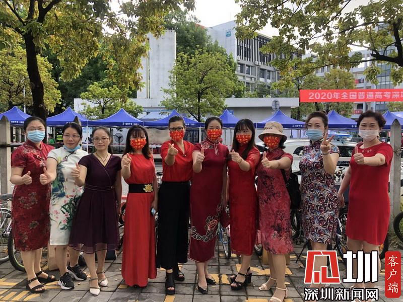 “以夢(mèng)為馬,不負(fù)韶華,旗開(kāi)得勝,馬到成功?!睂W(xué)生家長(zhǎng)們身穿旗袍為孩子吶喊助威。