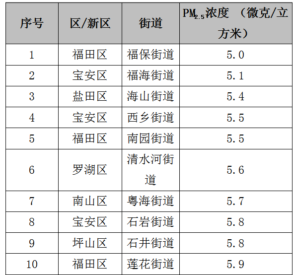 6月份深圳74街道PM2.5濃度排名出爐:福保街道空氣質(zhì)量最優(yōu)
