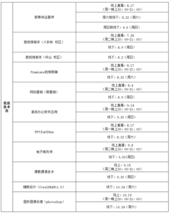 職業(yè)技能培訓(xùn)課程開課時(shí)間如下:
