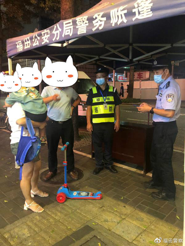 近日,深圳市公安局福田分局八卦嶺派出所巡段民警劉臣利剛處理完一起糾紛,就接到派出所前臺(tái)指令稱(chēng):在驛站附近有一名走失小孩需要幫助。接到指令后,巡段民警劉臣利立即前往現(xiàn)場(chǎng)。