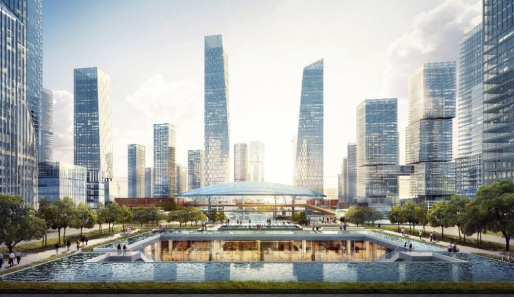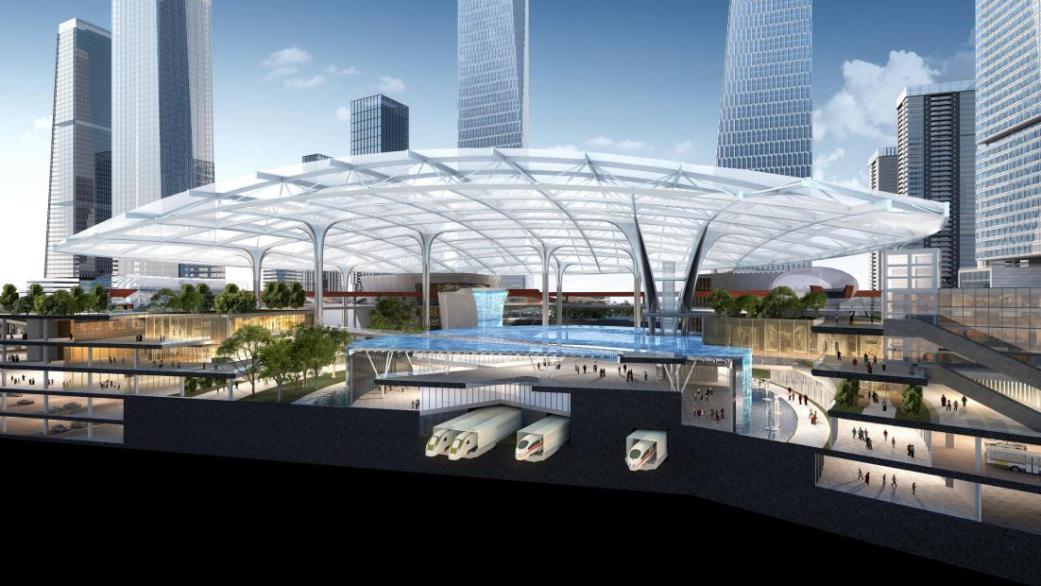 設(shè)計將新樞紐廣場融合城市公園、復(fù)合業(yè)態(tài)、多維換乘、自然意象、創(chuàng)意環(huán)境等多種場所,塑造多維體驗的城市超核和多維人群活動的北站都心。城市超核以豐富的空間層次融合室內(nèi)外觸媒,消除城市與樞紐界限,創(chuàng)造與城市功能相融合的等候空間,實現(xiàn)產(chǎn)業(yè)活力與自然活力共生,將車站、城市與自然和諧統(tǒng)一。