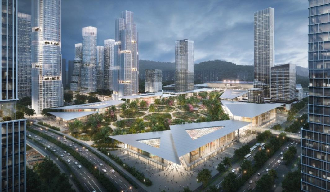 聚落肌理的創(chuàng)新交流坊環(huán)抱中央綠芯,設置公共服務、餐飲食肆等功能,通過通透的首層設計、大挑檐連廊打造,使人們在安享城市服務的同時,也能夠欣賞優(yōu)質的自然生態(tài)景觀,形成一個融合生態(tài)、交通和公共生活的超級中樞。