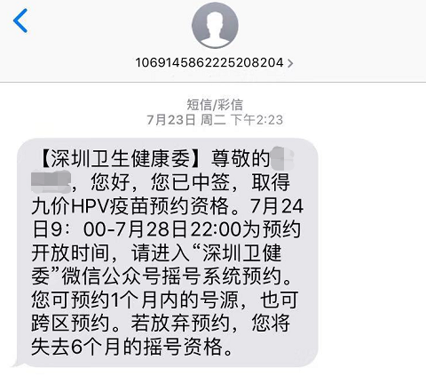 同時,中簽者還會收到深圳衛(wèi)健委的短信提示。