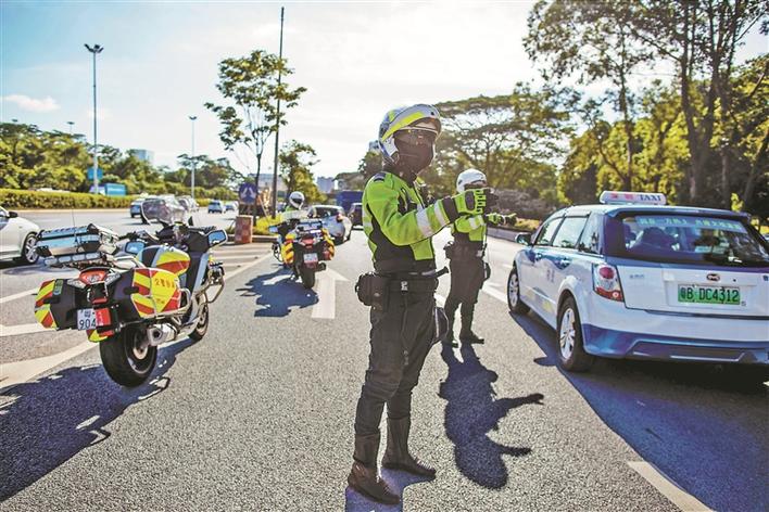 交警鐵騎隊(duì)員在烈日下穿梭于各種道路上。