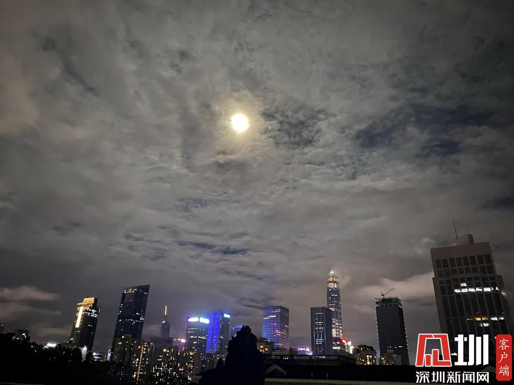 8月3日當晚,深圳降雨暫歇,月亮也露出笑容。當晚月亮升起時刻為19:06,不少深圳網(wǎng)友都拍到了圓月,并分享到社交平臺上。