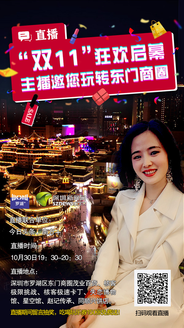 深圳新聞網(wǎng)訊(見圳客戶端、深圳新聞網(wǎng)記者 李慧 劉晨)提前探秘經(jīng)典活動(dòng)“68小時(shí)不打烊”熱潮、體驗(yàn)全亞洲最長的室內(nèi)索道、打卡失戀博物館、7D星空魔幻藝術(shù)館、走進(jìn)手沖姜撞奶的原創(chuàng)品牌糖水店、品嘗深圳特產(chǎn)……10月30日(本周五)晚上7:30-8:30,由深圳新聞網(wǎng)聯(lián)合深圳市羅湖區(qū)融媒體中心共同打造,聯(lián)合今日頭條、南方+直播平臺(tái),為市民開啟東門商圈狂歡預(yù)熱,解鎖“雙十一”嗨購方式,并在直播時(shí)段每隔20分鐘抽取一次幸運(yùn)網(wǎng)友,發(fā)放免費(fèi)150張吃喝玩樂禮品券。