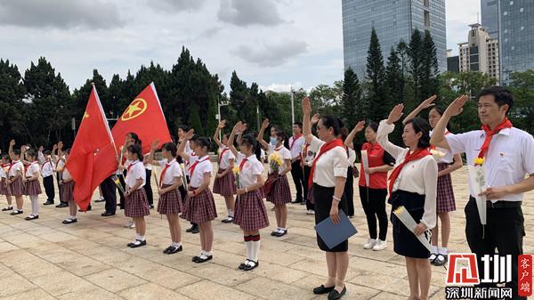 最后,全體參與人員在羅湖區(qū)東湖街道翠鵬社區(qū)黨委副書記甘麗麗及東曉小學(xué)少先隊(duì)大隊(duì)長(zhǎng)的帶領(lǐng)下重溫入黨、入隊(duì)誓詞,堅(jiān)定的誓言響徹每一個(gè)角落。