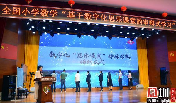 開幕式上,深圳市錦田小學與西安東城一小、江西贛州市黃金實驗小學;深圳市布心小學、江西省贛州市厚德路小學締結(jié)數(shù)字化“思樂課堂”姊妹學校。深圳市羅湖區(qū)教科院院長郭玉竹與羅湖區(qū)中學地理教研員數(shù)字化思樂課堂項目負責人劉春明為締結(jié)學校授牌。緊接著,東昌、錦田、水田、蓮南、布心、螺嶺6所數(shù)字化“思樂課堂”實驗小學數(shù)學科組代表進行經(jīng)驗分享。