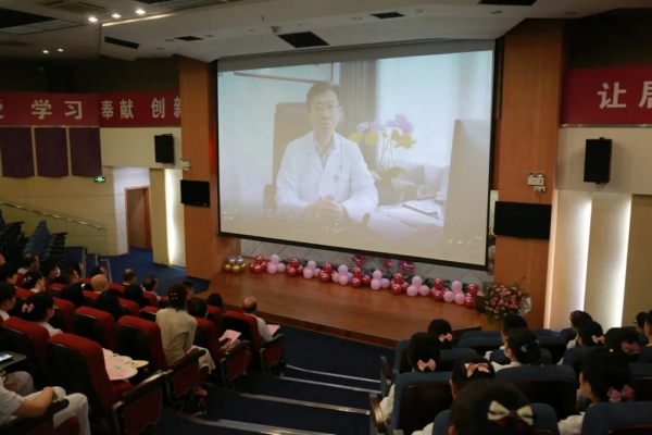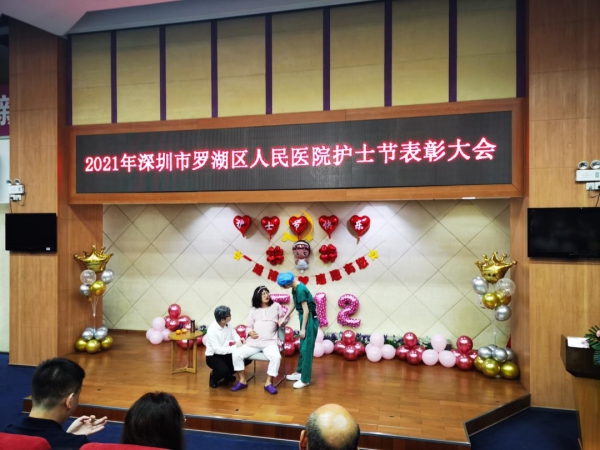 大連市中心醫(yī)院袁宏院長現(xiàn)場發(fā)來視頻祝福,圍繞“做人、做護士、做天使”為中心思想的優(yōu)質(zhì)護理服務(wù)理念,與在場的同仁們一起分享和探討心得感悟,并祝羅湖醫(yī)院的護理兄弟姐妹們節(jié)日快樂。