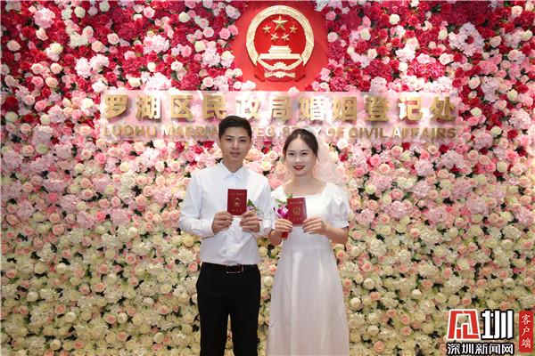 羅湖區(qū)婚姻登記處將疫情防控與高質(zhì)量登記服務(wù)有機(jī)結(jié)合,在準(zhǔn)備好充足防疫物資的基礎(chǔ)上,現(xiàn)場引導(dǎo)新人完成防疫流程,完成體溫測量和個(gè)人信息登記;同時(shí)聯(lián)動(dòng)多部門共同合作,確保疫情防控常態(tài)化下的婚姻登記服務(wù)工作平穩(wěn)有序開展。5月20日當(dāng)天,羅湖婚姻登記處辦理結(jié)婚登記218對(duì)。