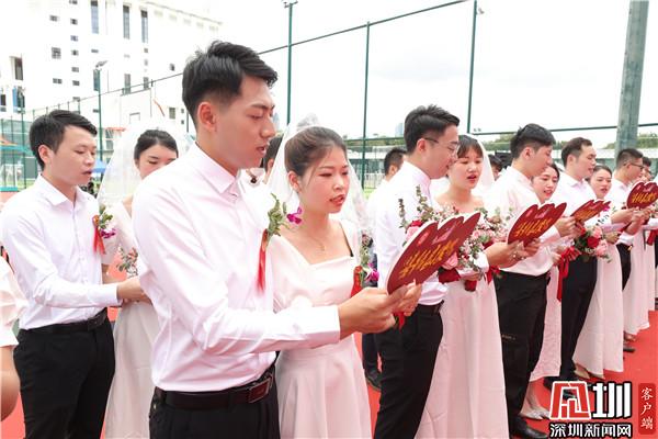 新郎身穿白襯衣,新娘身著潔白婚紗,他們十指緊扣,笑容甜蜜,在眾人的見證下交宣讀誓言、深情擁吻,許下一生愛的承諾。羅湖區(qū)副區(qū)長馮健和羅湖區(qū)民政局局長楊文秀作為特邀頒證師,分別為20對(duì)新人頒發(fā)結(jié)婚證書并送上誠摯的祝福,新人們的歡聲笑語充滿了婚姻登記處的每個(gè)角落,處處洋溢著幸福與喜悅。通過集體頒證莊嚴(yán)而神圣的儀式感,向新人們強(qiáng)調(diào)法律的嚴(yán)肅性和婚姻的莊嚴(yán)性,讓他們銘記婚姻家庭蘊(yùn)含的責(zé)任與擔(dān)當(dāng),同時(shí)倡導(dǎo)廣大市民樹立“重登記、強(qiáng)責(zé)任、崇節(jié)儉”的婚俗新風(fēng)意識(shí),形成婚事新辦、簡辦的文明新風(fēng)尚。
