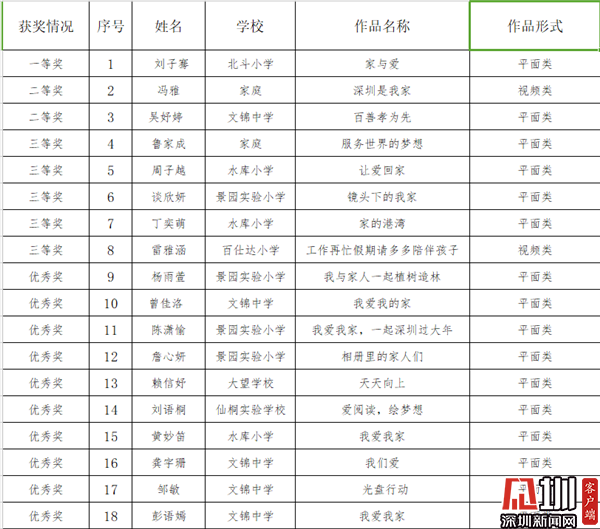 見圳客戶端·深圳新聞網(wǎng)2021年6月1日訊(記者 李慧)6月1日,羅湖區(qū)“家庭文明公益廣告”及“我家年度故事”征集活動(dòng)獲獎(jiǎng)名單公布,其中,18個(gè)“家庭文明公益廣告”和74個(gè)“年度故事”圖文作品獲獎(jiǎng)。