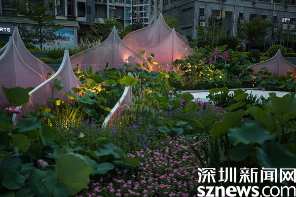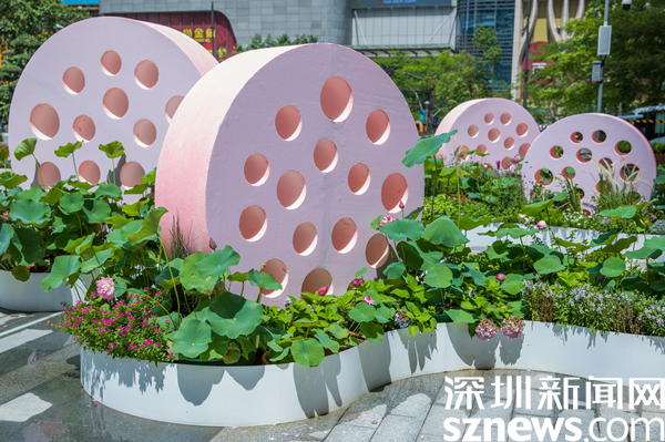 據(jù)介紹,街區(qū)以“花樣水貝、紅荷傳情”為主題,提取荷花、蓮葉等造型元素,應(yīng)用多品種荷花打造藝術(shù)花境,充分展現(xiàn)荷花的藝術(shù)之美、文化之美。圍繞水貝壹號、水貝金座、水貝銀座、水貝國際等商圈建筑設(shè)置有紅荷傳情、荷葉青青、荷你藕遇、鉆石蓮心、荷荷美美、映日荷花等景點(diǎn)。