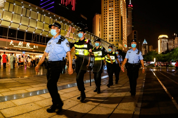 “我們已經(jīng)協(xié)調(diào)社康開始發(fā)號了,不要急,請耐心等待。”筍崗社康外,一名民警正頂著烈日揮汗如雨,耐心地給居民進(jìn)行解釋,警服肩頸處可見一道道汗?jié)n。