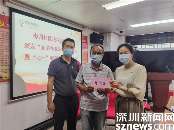 讀特客戶端·深圳新聞網(wǎng)2021年6月30日訊(記者 郭含笑 通訊員 陳秋珊 紀(jì)楚苗)為進(jìn)一步加強(qiáng)和體現(xiàn)黨組織對(duì)黨員的關(guān)心與愛(ài)護(hù),在中國(guó)共產(chǎn)黨百年華誕來(lái)臨之際,6月30日下午,深圳市羅湖區(qū)清水河街道梅園社區(qū)黨委在黨群服務(wù)中心二樓會(huì)議室舉行慶祝建黨百年頒發(fā)“光榮在黨50年”紀(jì)念章暨“七一”慰問(wèn)主題黨日活動(dòng)。
