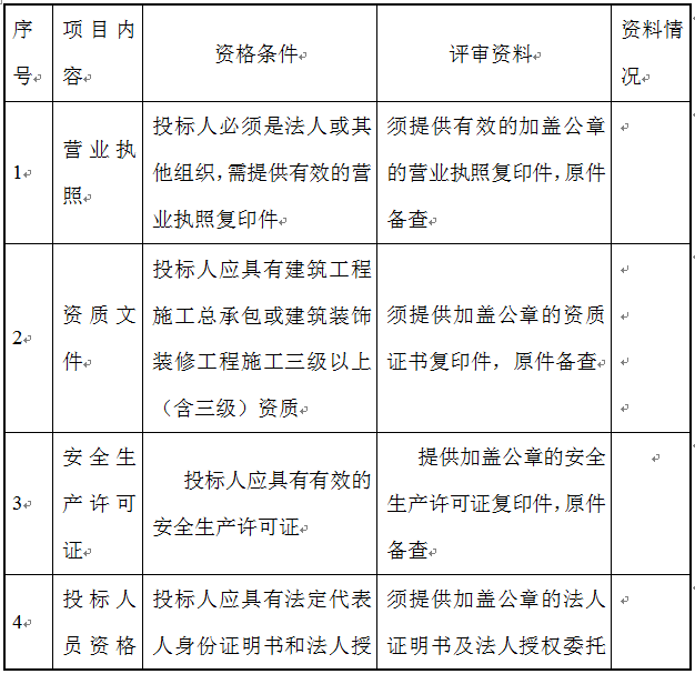 2.評(píng)議標(biāo)準(zhǔn)以招標(biāo)人和招標(biāo)機(jī)構(gòu)的意見為準(zhǔn);注:1.以上資格審查合格條件標(biāo)準(zhǔn)中如出現(xiàn)一處不符合要求,其投標(biāo)報(bào)名將不被接受;