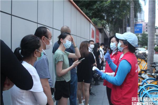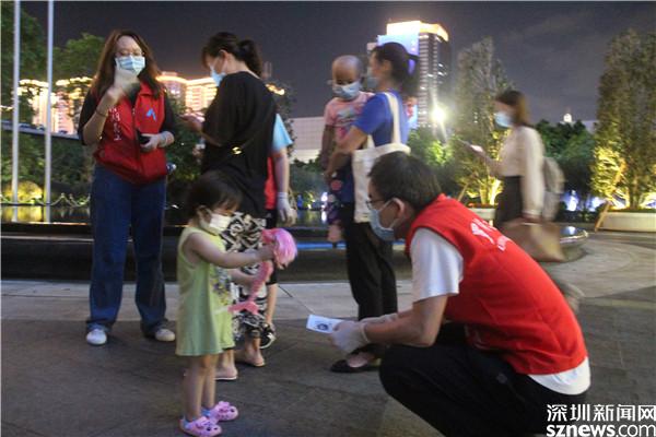最早到達(dá)老圍社區(qū)的下沉干部是羅湖區(qū)財(cái)政局副局長(zhǎng)朱健全,他一來就遇到了核酸檢測(cè),跟社區(qū)工作人員一起布置檢測(cè)現(xiàn)場(chǎng),協(xié)助居民登記健康碼、出示行程碼。有居民帶著孩子來做檢測(cè),他又臨時(shí)當(dāng)起了保育員,以便孩子的媽媽順利檢測(cè)。身穿紅馬甲的他看起來就是一個(gè)經(jīng)驗(yàn)豐富極富愛心的義工。