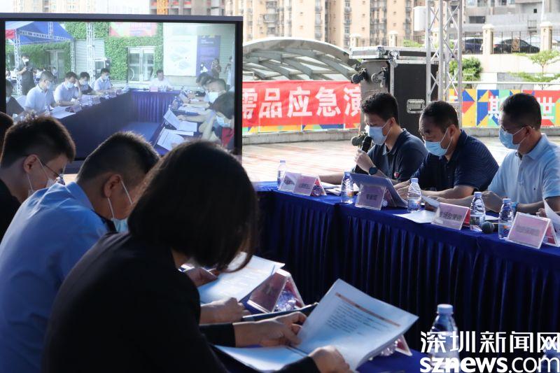 當天下午3點,隨著本次演練現(xiàn)場指揮長、深圳市商務(wù)局副局長簡政下達演練開始指令,活動正式開始。本次演練分為兩個場景,首先演練因極端天氣影響造成某行政區(qū)域生活必需品供應(yīng)面臨供應(yīng)不足造成的短缺,市場供應(yīng)方面演練突發(fā)事件應(yīng)急處置;然后是受新冠疫情影響部分小區(qū)進行封閉封控管理,演練封控區(qū)域生活物資供應(yīng)應(yīng)急保障處置。