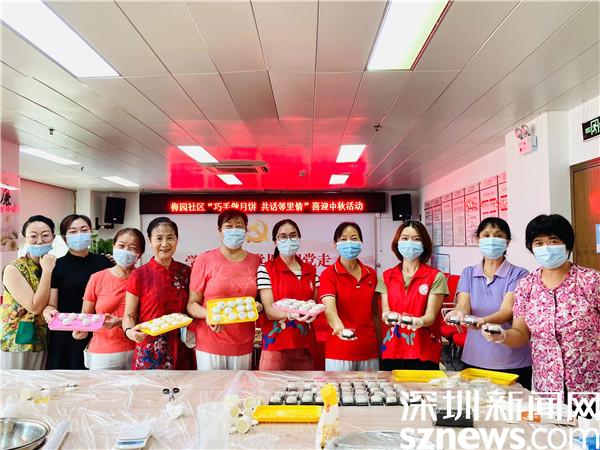 現(xiàn)場有的居民和面、搓餅皮,有的則在一旁稱餡料、壓模具。大家發(fā)揮團結互助精神,分享自己的方法和經驗,現(xiàn)場一片歡聲笑語,制作完成的小小的月餅,承載了濃濃的情誼和愛心。