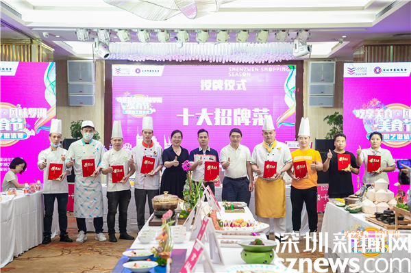 活動(dòng)現(xiàn)場,外婆生煎蝦餅、海膽汁焗龍蝦、竹笙馬蹄椰子雞等42道色香味俱全的佳肴輪番上陣,廚師長各自介紹菜品特色和背后故事,加深活動(dòng)群眾對中華飲食文化的了解。同時(shí),由行業(yè)資深專家組成的評審委員會對參賽作品的口味與質(zhì)感、工藝與火候、創(chuàng)意與實(shí)用、形態(tài)與色澤、營養(yǎng)衛(wèi)生安全等綜合評定打分,最終評選出羅湖十大招牌菜為外婆生煎蝦餅、竹笙馬蹄椰子雞、鴛鴦海中寶、黑胡椒焗波士頓龍蝦、膏蟹基圍蝦砂鍋粥、手工熟牛肉丸、六星燒腩骨、石斛活遼參湯、頭抽浸脆鯇魚、金戈戈香港豉油雞,十大特色菜為三叔烤羅蝦、有機(jī)青稞富貴石榴球、剁椒千島湖有機(jī)魚頭、荷塘蝦趣、蒙式烤羊排、小炒黃牛肉、菊花煲雞湯、潮泰金牌濕炒牛河、姚姚酸菜魚、招牌海南粉,十大名廚為林榮飄、梁文添、區(qū)增貴、杜明福、茍亞強(qiáng)、袁杰軍、劉品繁、張志平、陳煜保、杜保坡。