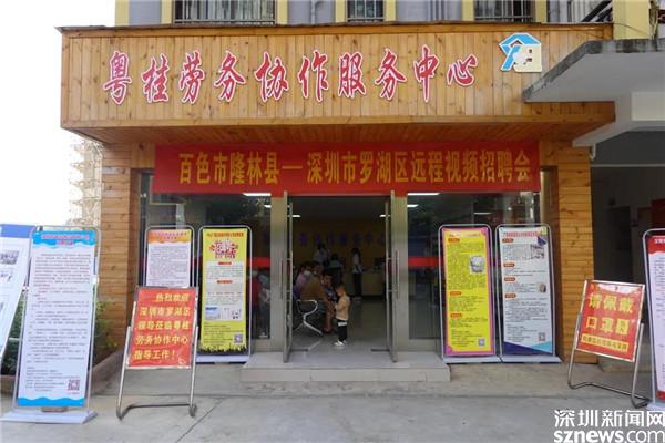 在粵桂勞務(wù)協(xié)作服務(wù)中心,一場兩地遠(yuǎn)程視頻招聘會正在舉行,不少百姓拿著心儀的崗位介紹在等候面試。服務(wù)中心前臺放置著四臺電腦,參加面試的人坐在電腦前連接視頻,視頻的另一端,是來自羅湖區(qū)的企業(yè)。這樣的視頻招聘會,定期在服務(wù)中心舉行。