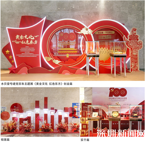 水貝壹號作為多家上市珠寶公司的總部基地,石妍說,作為黃金珠寶行業(yè)發(fā)展的見證者和實踐者,水貝壹號始終堅持以黨建為重要抓手,弘揚光榮傳統(tǒng)、賡續(xù)紅色血脈,為熱烈慶祝中國共產(chǎn)黨成立100周年,回顧中國共產(chǎn)黨波瀾壯闊的奮斗歷程,熱情歌頌建黨百年的輝煌業(yè)績,從7月1日始至10月31日止為期100天,推出以“黃金文化紅色東方”為主題的系列展覽活動,展覽內(nèi)容包括“1921年一大南湖紅船”滌蕩百年文創(chuàng)作品展、“三牛”精神文創(chuàng)作品展、《深圳八景》金箔剪紙藝術(shù)展等,獻禮建黨百年華誕。每天吸引大批慕名而來的黨員和市民圍觀打卡,近5000余人次到場參加,媒體曝光傳播10萬余次。