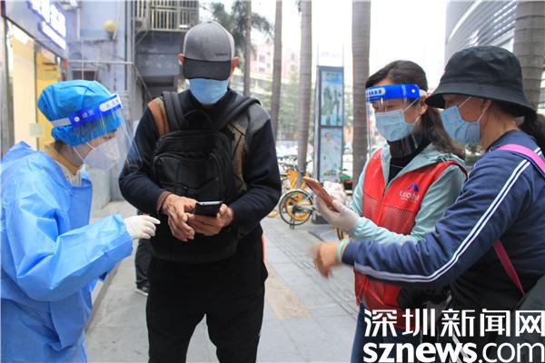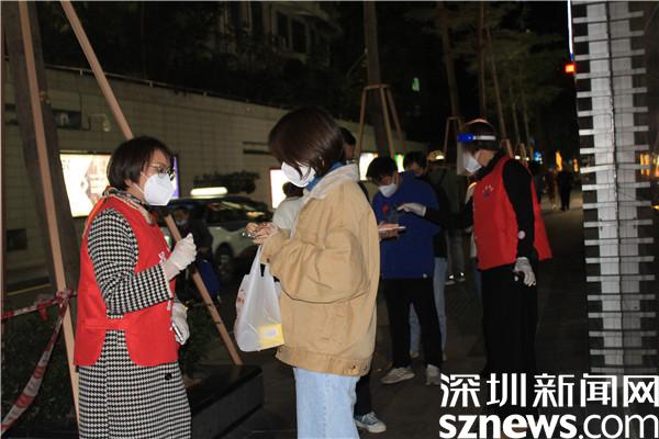 “楊妹,我來了,還帶來了一個人。”13日晚,正在羅湖區(qū)桂園街道老圍社區(qū)禧程酒店核酸檢測點忙碌的社工楊女士,接到志愿者溫寶珍的電話。溫寶珍從“0107疫情”開始以來,每天都在核酸檢測點協(xié)助核酸檢測,這晚她把自己的兒媳婦吳永霞也帶來了?!捌牌艅倧钠渌鐓^(qū)的核酸檢測點做完義工回來,聽說老圍社區(qū)需要人,放下飯碗就來了。婆婆這么大年紀(jì)了還沖在前面,我做兒媳婦的,怎么也要向婆婆學(xué)習(xí)啊。”吳永霞對社工說。“應(yīng)該的應(yīng)該的,疫情當(dāng)前,每個人都有義務(wù)出來與病毒作戰(zhàn),光是靠社區(qū)工作者不行,他們太累了。”溫寶珍邊說邊幫兒媳穿好義工服,把粵核酸的二維碼交給兒媳,并教兒媳如何在手機上查驗。