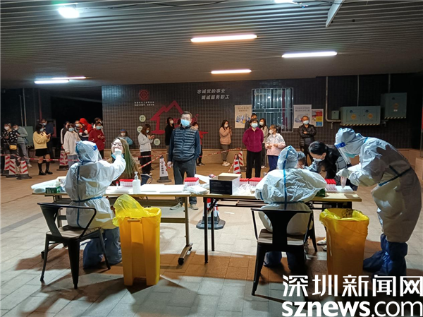這天,老圍社區(qū)某棟樓全員檢測,社區(qū)緊急設(shè)立了臨時(shí)檢測點(diǎn),社區(qū)黨委書記許少瓊忙前忙后指揮布置現(xiàn)場,調(diào)度管理處通知住戶下樓采樣,所有社區(qū)工作人員緊急行動(dòng)起來,醫(yī)務(wù)人員也很快就位,居民積極配合,采樣工作有序進(jìn)行。