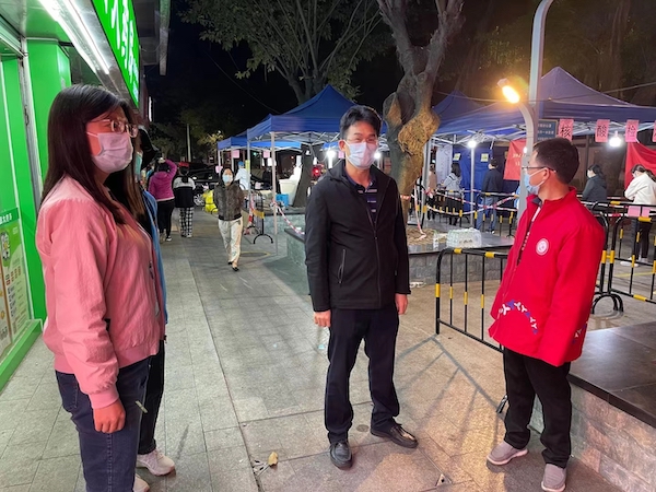 隨后,文促會一行來到了東湖街道大望社區(qū)。在社區(qū)核酸檢測現(xiàn)場,大望社區(qū)黨委書記高桂秀正在指揮現(xiàn)場工作;大望實(shí)業(yè)公司董事長何雨聰和大望社區(qū)副書記李雪康兩人都面帶倦容,明顯近期睡眠嚴(yán)重不足。據(jù)了解,高桂秀近期一直綁著護(hù)腰墊片,帶病堅(jiān)持抗疫。