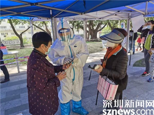 其中有一位長期堅持不懈來做志愿者的老黨員黃妙仙,尤為讓人感動。由于家住得遠,每回過來公交、地鐵需輾轉(zhuǎn)3趟,近一個半小時,從街道雅士居的核酸檢測點到玉龍社區(qū)的金湖公園核酸檢測點,只有她有空,從未缺席。手肘尚未痊愈就匆匆趕來,只因看到報名的人數(shù)不夠;寒夜里鞋襪濕透仍在堅持,只因未到換崗時間。每回勸她多點休息,她總說我是黨員,還是支委,應(yīng)該多做的。