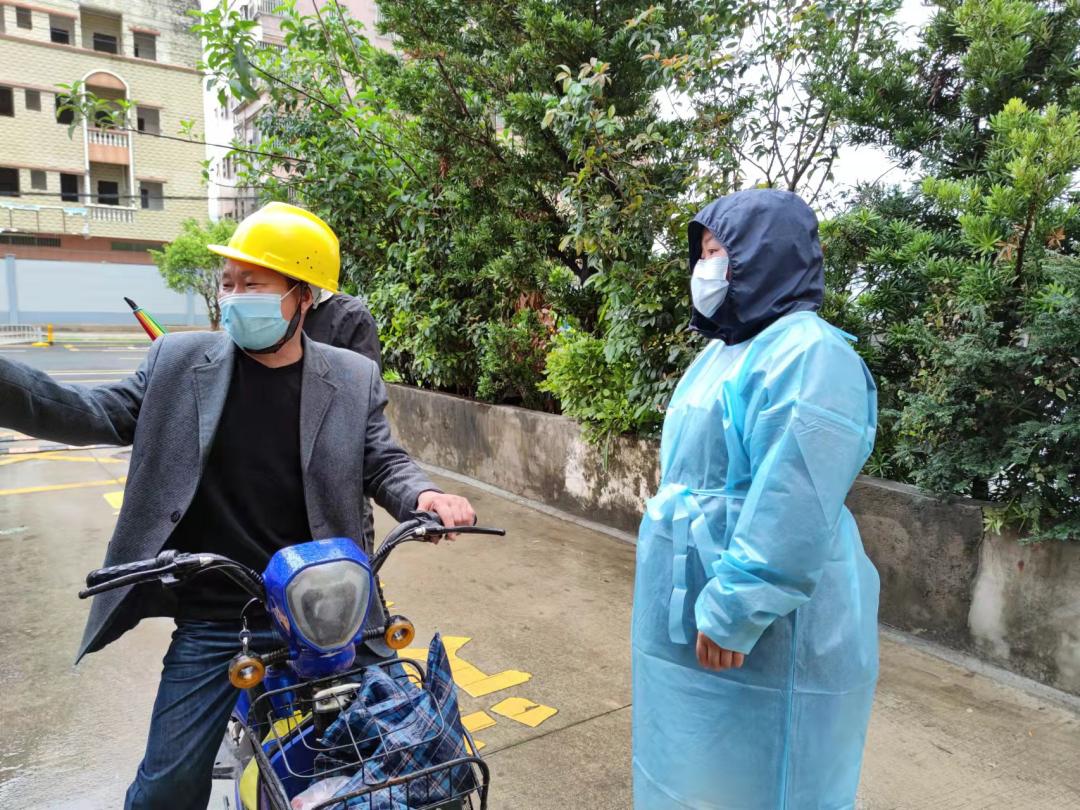 △ 關(guān)工委委員趙為兵、賴(lài)碧梅帶頭參與疫情防控工作,動(dòng)員轄區(qū)物業(yè)、熱心居民共同參與抗疫志愿服務(wù)