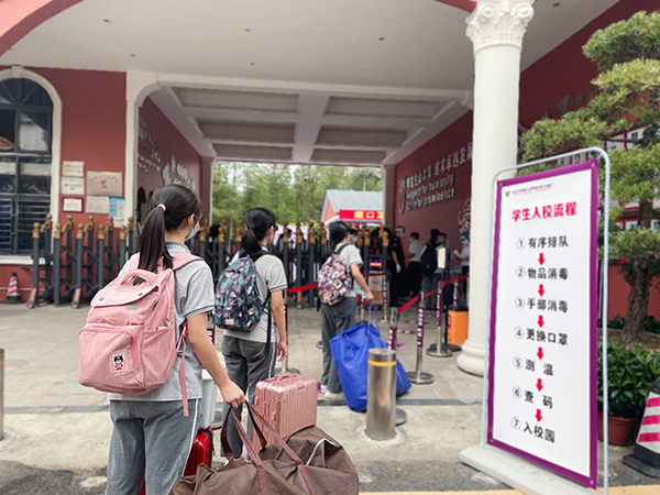 讀特客戶端·深圳新聞網(wǎng)2022年4月11日訊(記者 吳艷 通訊員 魏次開)今日上午7點(diǎn)左右,羅湖區(qū)諾思外語實(shí)驗(yàn)學(xué)校大門外,帶著濃濃返校期盼的學(xué)生和家長們?cè)缫烟崆暗群蛟趯W(xué)校門口,左手書包右手行李,自覺列隊(duì)等待核驗(yàn),開啟了初三學(xué)生春季學(xué)期返校的序幕。