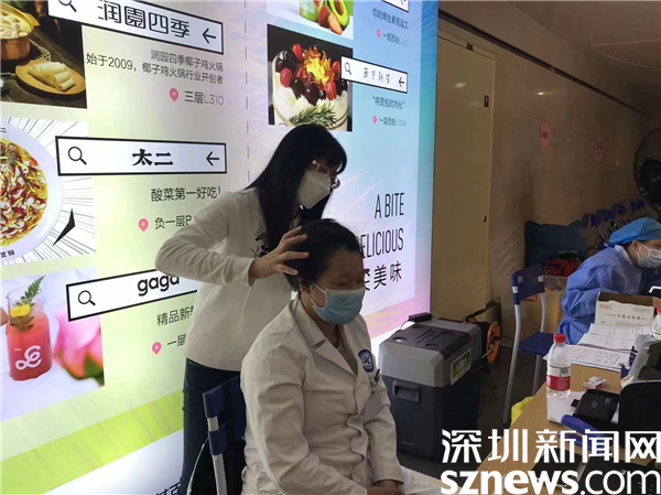 5月1日下午,老圍社區(qū)黨委書記許少瓊來到KKMALL商場負一樓的疫苗接種點,看望現(xiàn)場的工作人員和醫(yī)務人員,檢查當天的疫苗接種情況,并與工作人員一起動員來往行人進行加強針的接種。當她聽說負責登記的醫(yī)生因為淋雨著涼而頭疼得厲害,卻還在默默堅持時,許少瓊立刻走到醫(yī)生的身后,為醫(yī)生按摩頭部。被按摩的醫(yī)生一再說,“很舒服,輕松了很多。”其實,這一天,連續(xù)工作4個月無休的許少瓊,身體也不是很好,但她用堅強的毅力壓抑了身體的不適,以一貫的積極樂觀影響帶動著身邊的同事。