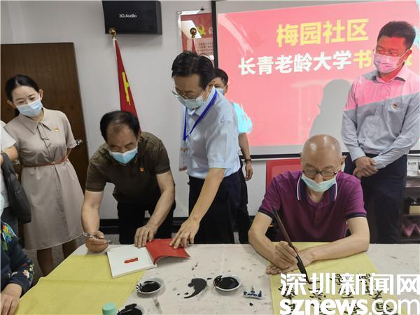 現(xiàn)場,還邀請了梅園社區(qū)長青老齡大學(xué)書法班鄒洪濤老師向大家講解,鄒洪濤既是書法班的老師,也是社區(qū)第十黨支部的支部書記,更是一名基建工程老兵。當(dāng)鄒洪濤介紹家喻戶曉的照片《升》的主人公正是他本人,更是讓王云虎對他豎起了大拇指。他激動地表示,鄒洪濤的紅嶺大廈建筑工地上被定格的這張“頂天立地”的照片,是基建工程兵傾力投身改革開放的縮影,展示了深圳經(jīng)濟(jì)特區(qū)初創(chuàng)時(shí)蒸蒸日上的發(fā)展勢頭,是深圳建設(shè)初期時(shí)代張力的見證。