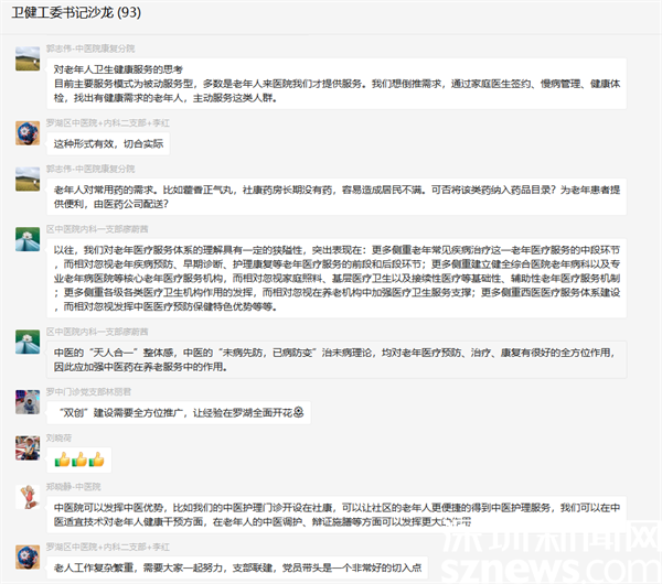 此次沙龍活動在一個小時內,收到各書記參與討論的信息超過200條,大家參與情緒熱烈。下一步,羅湖區(qū)委衛(wèi)生健康工委將把此次“書記沙龍”提出的好建議作為下一步老年健康服務工作的改進方向,力促沙龍形成的經(jīng)驗、思路切實轉化為實際舉措和工作亮點,在黨建業(yè)務融合、健康共建共治、探索創(chuàng)新實踐上持續(xù)發(fā)力,不斷提升群眾的滿意度和獲得感,真正成為群眾的“暖心人”“貼心人”。