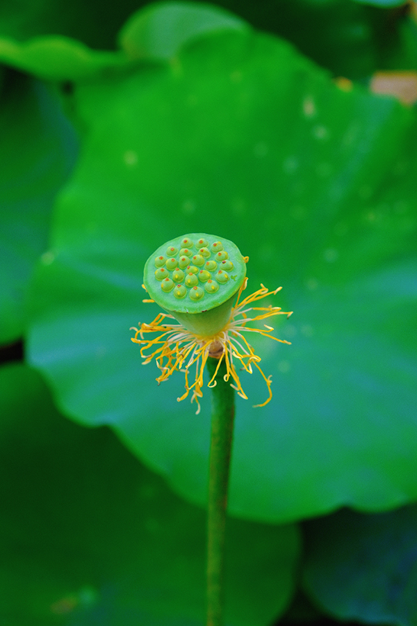 夏風(fēng)輕輕拂過“害羞”的小蓮蓬,翠綠的荷葉層層疊疊,錯落有致。