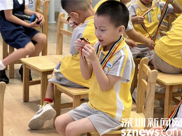 清秀幼兒園原創(chuàng)的《清秀洗手歌》是本次課程中重要的教學(xué)內(nèi)容,展演現(xiàn)場,孩子們隨著洗手歌輕松快樂的旋律,展示了洗手的正確步驟。主題課程期間,清秀幼兒園開展了線上洗手打卡的“萌娃洗手打卡周”活動(dòng),呼吁家長和孩子在家中也要洗手并打卡,養(yǎng)成良好的衛(wèi)生習(xí)慣。隨著課程深入,孩子們洗手意識(shí)越來越強(qiáng),洗手動(dòng)作也越來越規(guī)范,為了表彰他們的優(yōu)秀表現(xiàn),也提醒他們今后也要堅(jiān)持洗手好習(xí)慣,教研組為35名兒童頒發(fā)了“洗手打怪小超人”獎(jiǎng)?wù)隆D玫接≈约好值莫?jiǎng)?wù)碌囊豢?,小朋友的喜悅之情溢于言表,即使到臺(tái)下也仔細(xì)觀察著獎(jiǎng)牌。