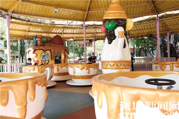 旋轉的“咖啡杯”上,不少父母帶著孩子在這里放聲大笑。