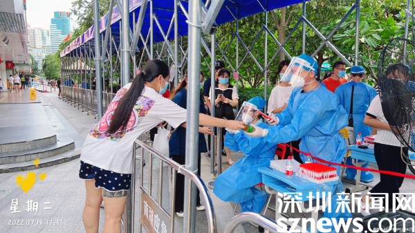 讀特客戶(hù)端·深圳新聞網(wǎng)2022年7月25日訊(記者 謝秋平)疫情當(dāng)前,核酸檢測(cè)成為居民的“日常打卡”。為了保障高溫下核酸檢測(cè)的日常運(yùn)行,羅湖多措并舉開(kāi)展降溫解暑措施,近日,移動(dòng)式核酸采樣小屋和遮陽(yáng)帳篷在羅湖區(qū)南湖街道文錦社區(qū)亮相,為烈日下的“大白”提供了舒適的核酸采樣工作環(huán)境,同時(shí),也為前來(lái)核酸采樣的市民緩解暑熱。