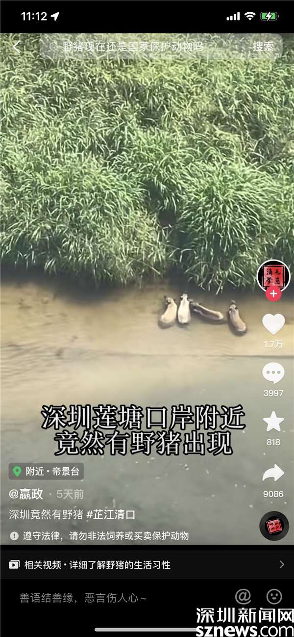 記者咨詢蓮塘街道和羅湖區(qū)城市管理綜合行政執(zhí)法局相關(guān)負(fù)責(zé)人表示,此次野豬出沒(méi)的地點(diǎn)的是在口岸對(duì)面,不屬于深圳管轄的范圍。此前,在仙湖植物園和梧桐山風(fēng)景區(qū)也頻現(xiàn)野豬身影。