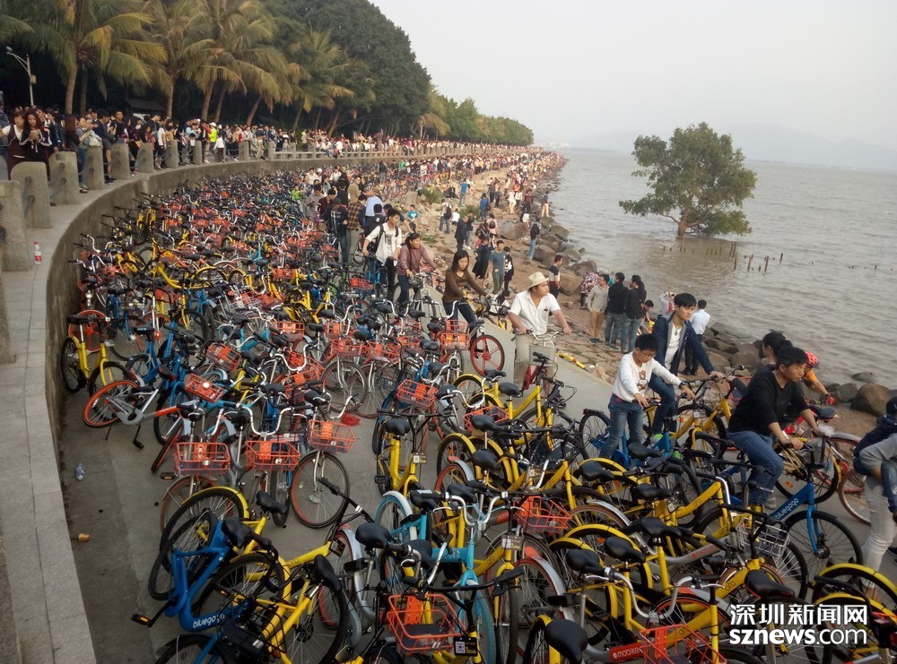 深圳人假日勤動腳,深圳灣公園被自行車堵了?