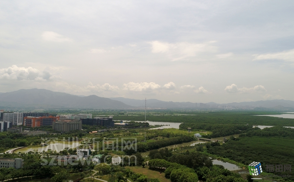 紅樹林生態(tài)公園西邊緊臨福田紅樹林國家級自然保護區(qū),南邊一河之隔的對岸是屬于拉姆薩爾國際重要濕地的香港米埔自然保護區(qū)。