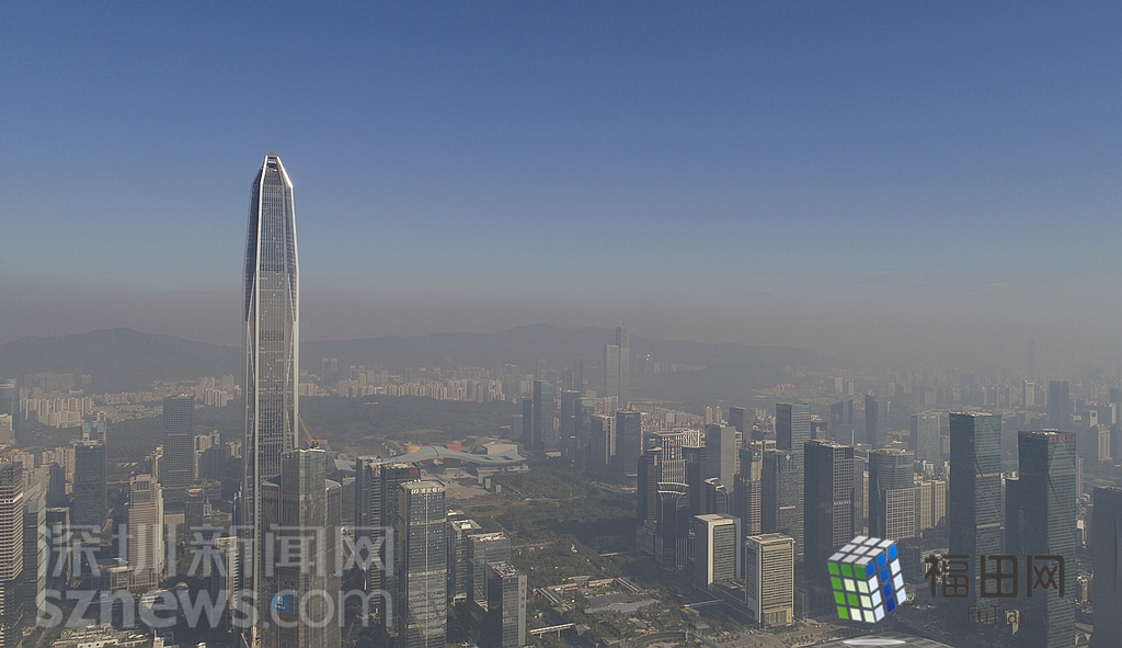 1月18日上午,記者操控無人機俯瞰深圳中心區(qū)發(fā)現,灰霾將天空“割裂”成一道涇渭分明的界線,把城市籠罩得如同一個充滿霧靄的森林。從平安金融大廈的上空遠眺,西南面的深圳灣在灰霾的籠罩下變成了一片“沙漠”,東面的京基一百幾乎被灰霾“吞沒”,北邊平時肉眼可看的梅林山也因為能見度較低變得若隱若現,南面的米埔濕地也被云遮霧繞。